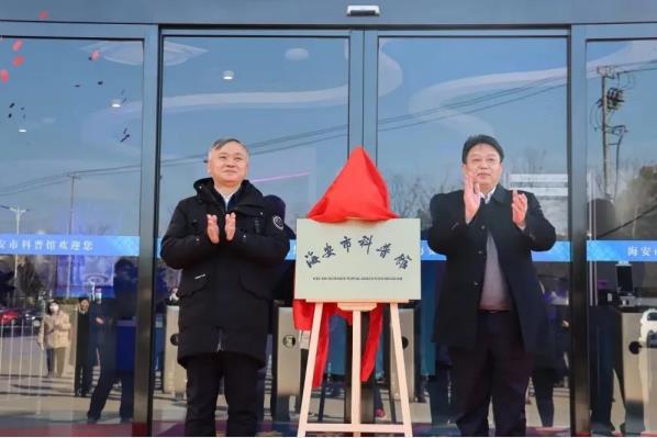 ▲海安市委書記于立忠、市委副書記張浩為海安市科普館揭牌