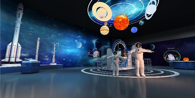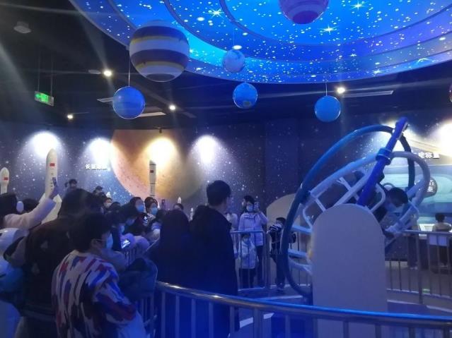 “宇宙奧秘”展廳以“尋理”“飛天”為展示線索,設置仰望星河、飛天征空兩個分展區(qū),詮釋人類與太空之間的關系,使參觀者一步步認知太空,在探索和發(fā)現(xiàn)中認識宇宙的美妙和神奇。