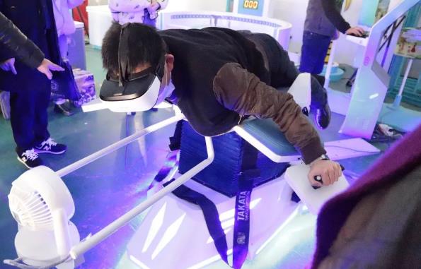 在“翼裝飛行”互動展項前,考察人員親自穿戴裝備,感受凌空翱翔的驚險與刺激,充滿趣味性和沉浸感的互動展品給在場人員留下了深刻印象。