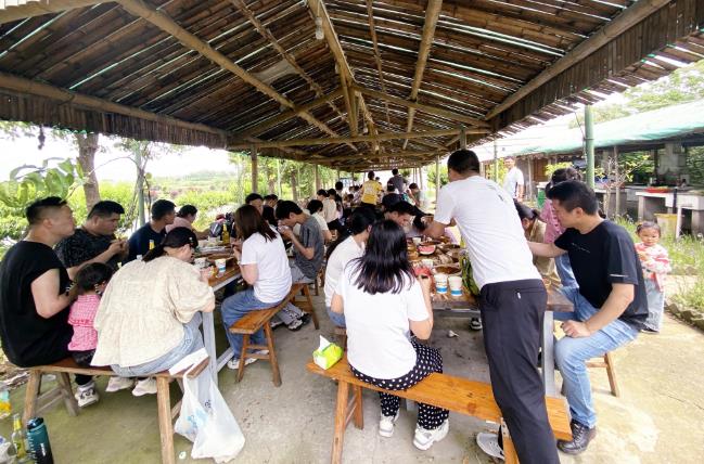 走出室內(nèi),走進(jìn)鄉(xiāng)野,在田園間搭起的灶臺(tái)旁,砍柴、燒柴、熱鍋、翻炒……伴隨著濃烈的煙火氣息,DIY一頓豐盛的農(nóng)家大鍋飯,絕對(duì)是本次活動(dòng)值得回味的體驗(yàn)之一。親子家庭三五成組,分工有序,不一會(huì)簡(jiǎn)單的食材就變成桌上一道道農(nóng)家美味,秀的是廚藝,吃的是滿(mǎn)足。