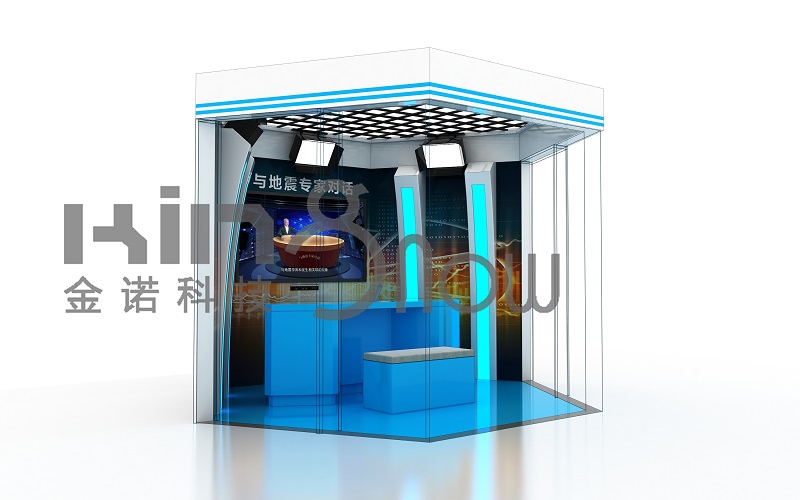 虛擬訪談室內(nèi)設置訪談桌和兩把座椅,設置男女各一位虛擬地震專家的形象,坐在左側座椅上,右側座椅上呈現(xiàn)攝像頭采集到的觀眾上半身影像,觀眾坐上座椅即觸發(fā)游戲互動。