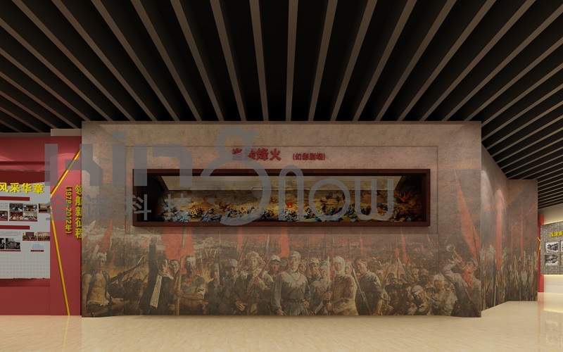 當(dāng)觀眾靠近時(shí),系統(tǒng)自動(dòng)啟動(dòng)播放對應(yīng)的幻像影片,與左側(cè)沙盤場景有機(jī)融合,以幻像劇場的形式展示橫山保衛(wèi)戰(zhàn)事件的起因、經(jīng)過和結(jié)果,再現(xiàn)一段激動(dòng)人心的紅色歷史。