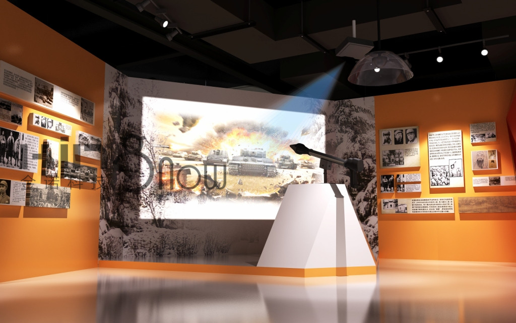 該產(chǎn)品待機畫面是自衛(wèi)反擊戰(zhàn)動態(tài)場景,觀眾按下操作臺上的“啟動”按鈕,前方待機畫面進入游戲狀態(tài),顯示3、2、1倒計時。觀眾通過操作固定在展臺上的40火箭筒模型,十字線對準前方墻面投影的圖像的坦克十字標,扣動扳機,有聲音,視頻炮彈飛出效果和打中坦克的爆炸效果。沒打中雪地出現(xiàn)黑斑。對方坦克也會對射擊者開炮,若自己被畫面中坦克擊中,生命條血量就會下降。系統(tǒng)設(shè)置N發(fā)炮彈之內(nèi)要消滅一定數(shù)量坦克(經(jīng)過系統(tǒng)測試后,確定)。