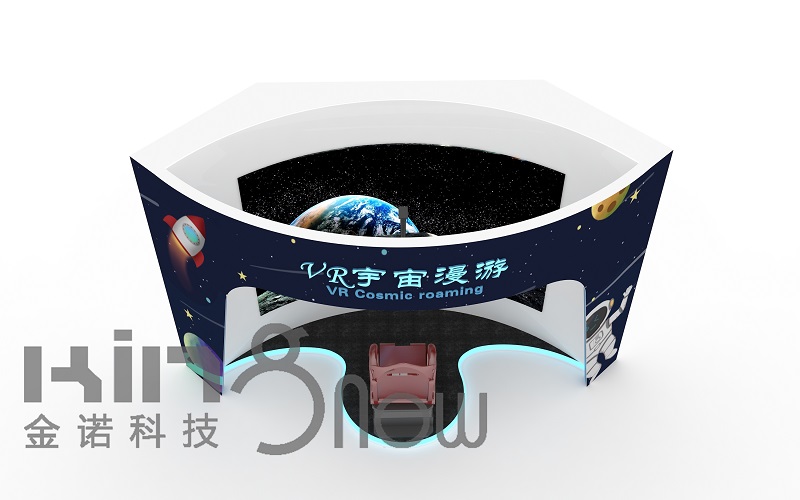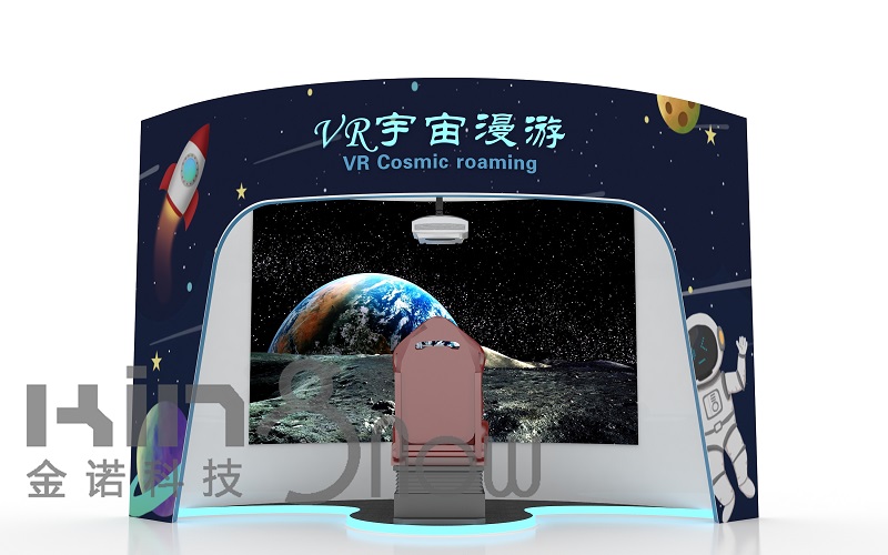展項(xiàng)地面設(shè)置簡(jiǎn)易的飛船模型,飛船模型內(nèi)設(shè)置一套動(dòng)感座椅。觀眾在工作人員指導(dǎo)下進(jìn)入飛船模型,坐在座椅上,佩戴VR頭盔,準(zhǔn)備宇宙漫游體驗(yàn);